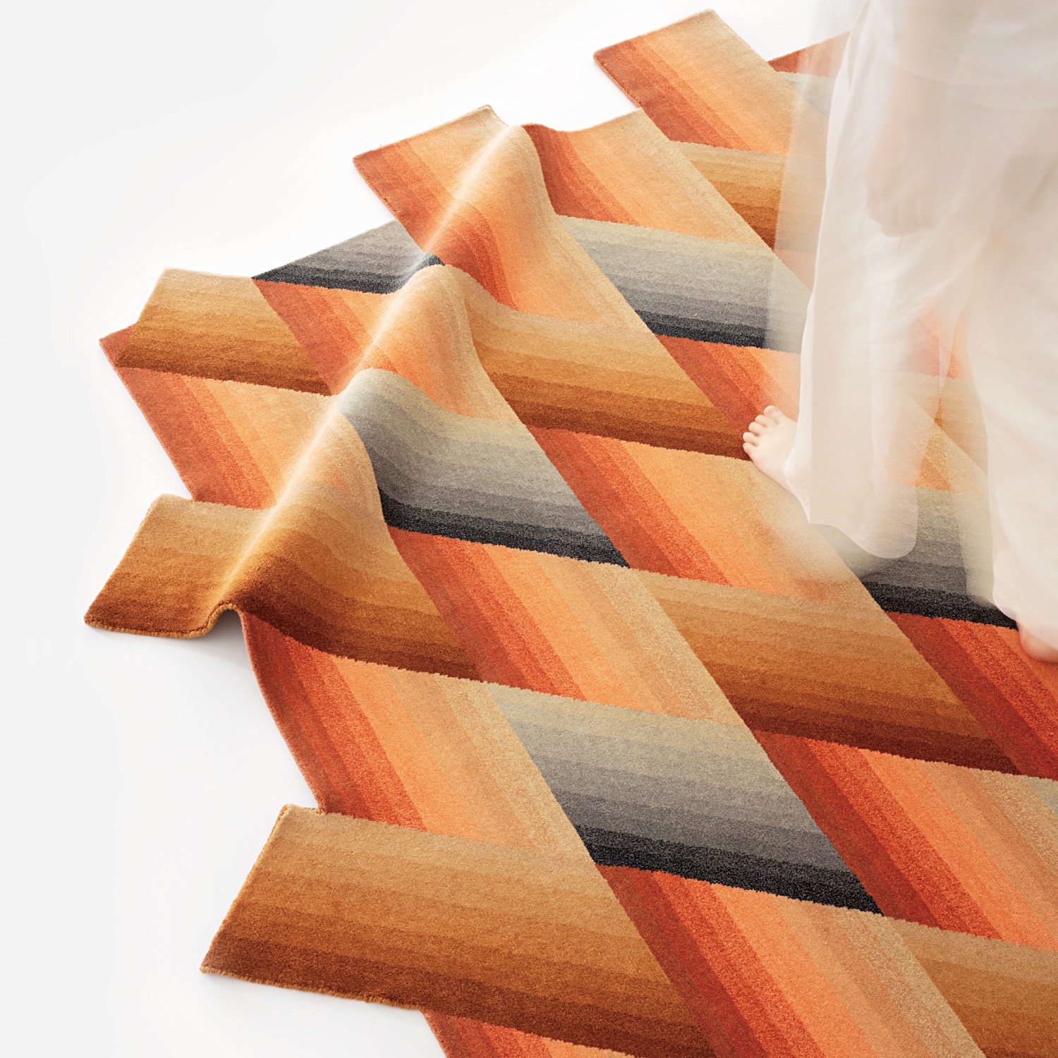 The irregular shape and natural wool texture create the perfect wabi-sabi vibe. Handmade details make each piece unique. Absolute art for floors!