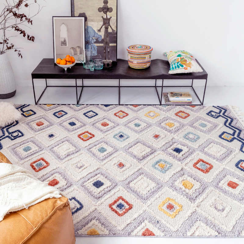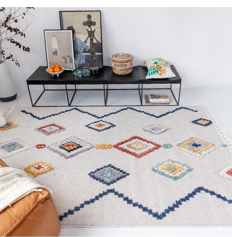 Luxury 15mm Turkish Moroccan Rug: Glue-Free, Soft Diamond Tufted Design & Easy-Care Comfort by BUNISE.