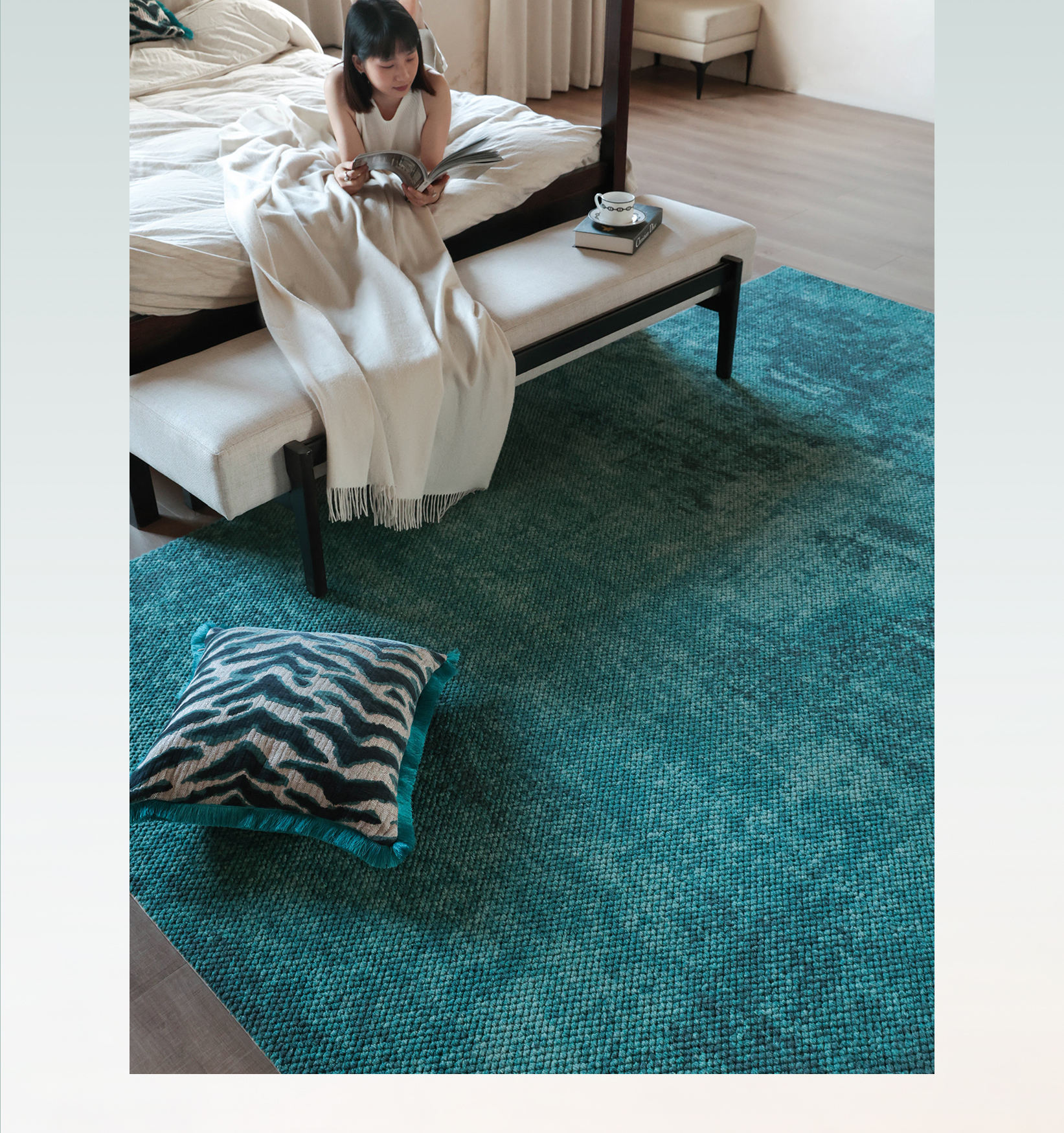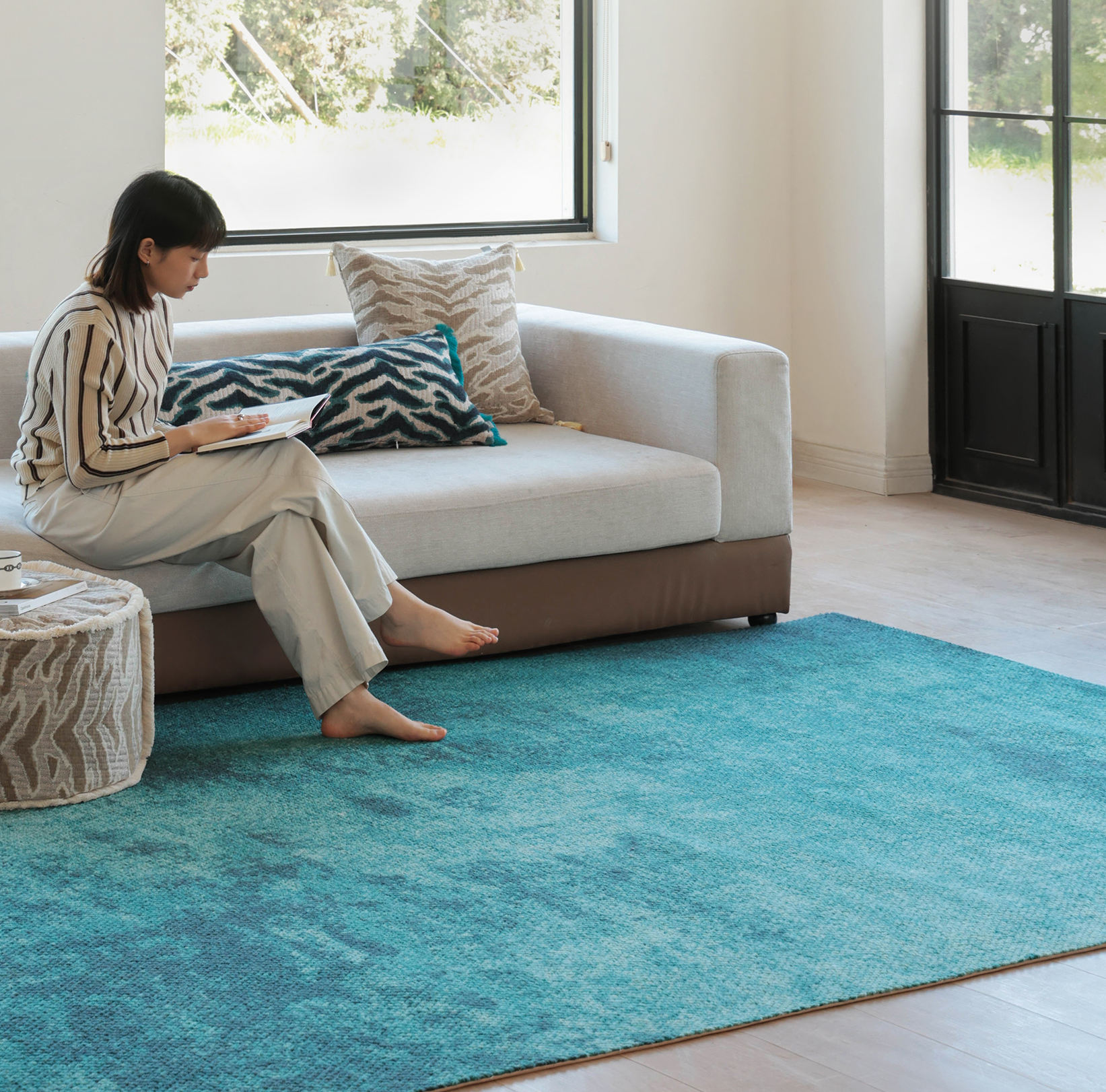 很喜欢 面料材质非常舒服 像踩在一片玻璃海上面~非常适合夏日!整个家就像地中海风,爱了爱了❤