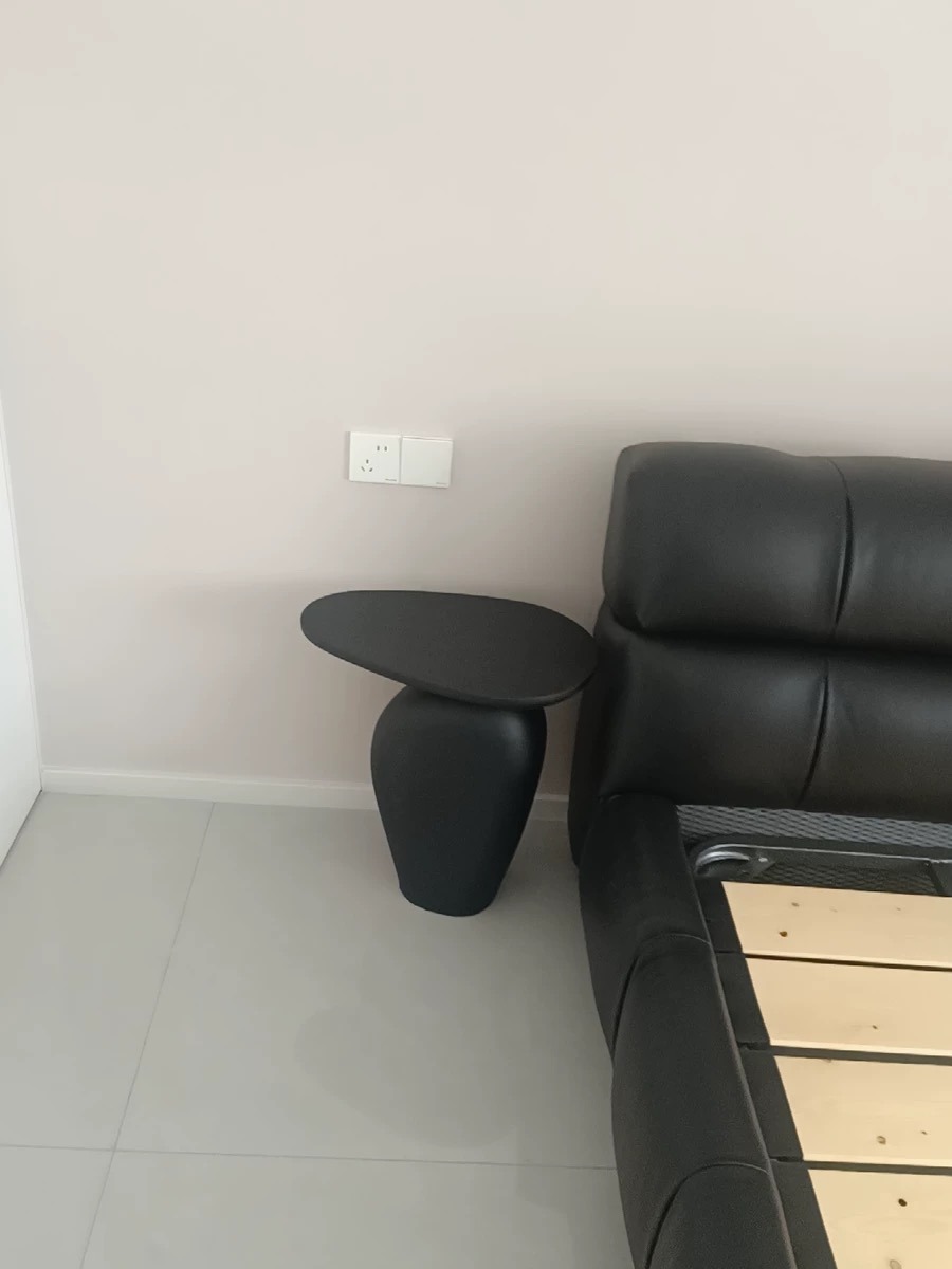 Modern Double Bed Carbon Steel Floating Frame with Genuine Leather Headboard Minimalist Style Ideal for Master Bedroom