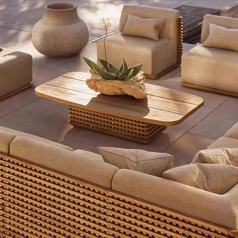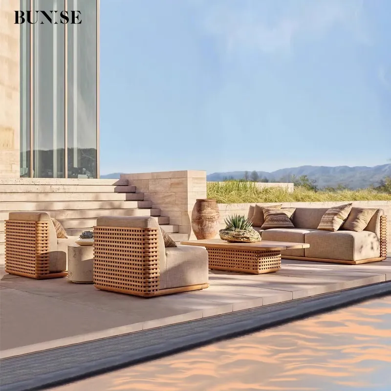 BUNISE Teak Outdoor Sofa Set P40 – Solid Wood Patio Furniture with Coffee Table for Villas, Hotels, and Gardens