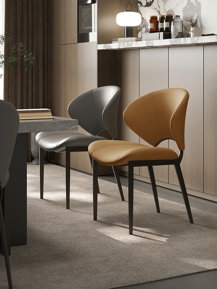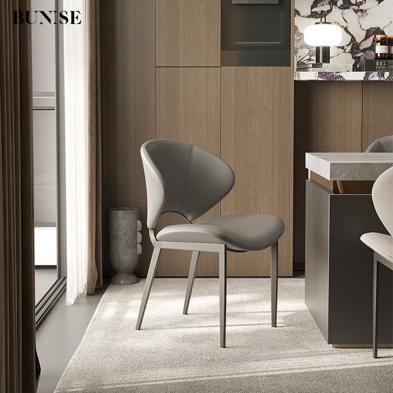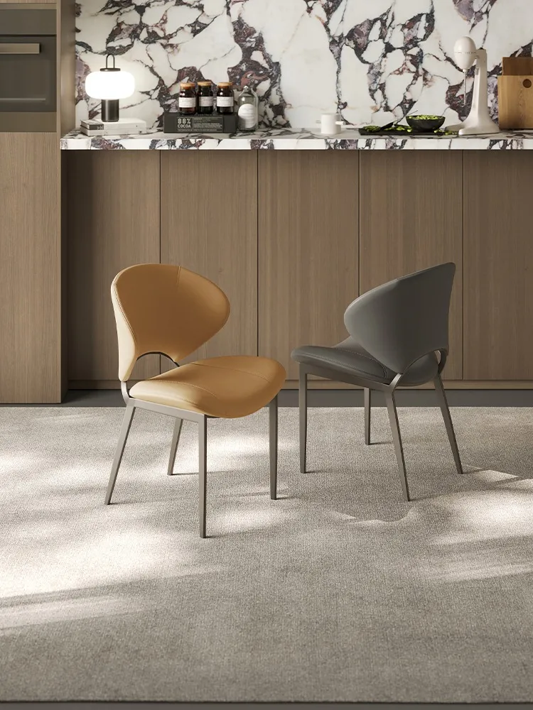 Nordic Luxury Designer Dining Chair, Home Italian Minimalist Simple Modern Leather High-End Enveloping Dining Table and Chair Set
