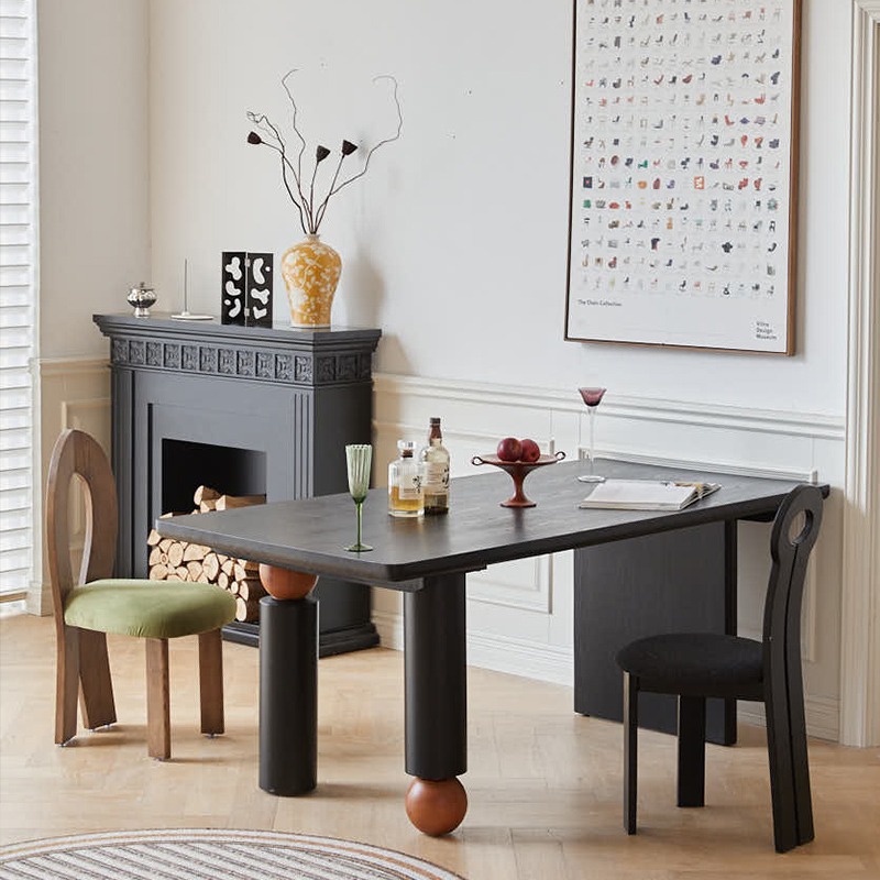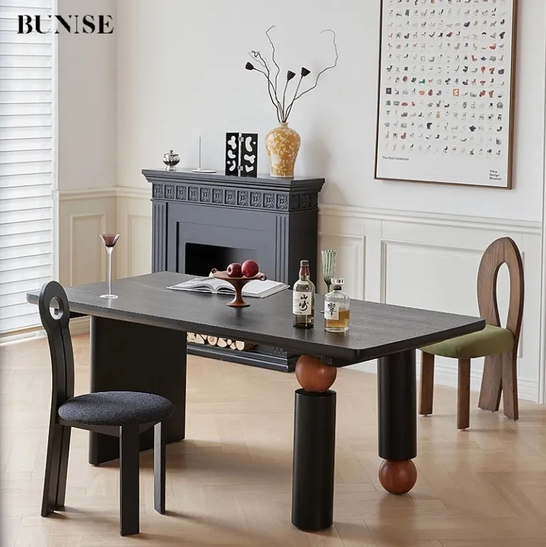 Nordic solid wood rectangular dining table,Modern creative black retro dining table,Wabi-sabi log simple dining table