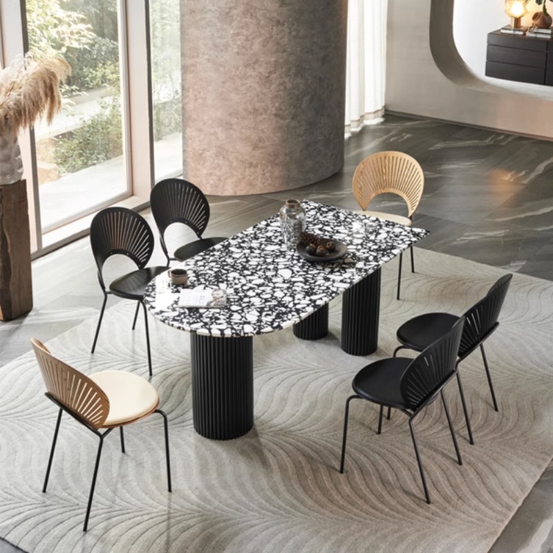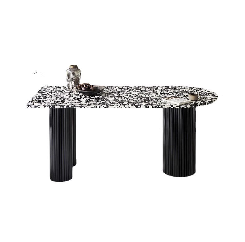 French vintage marble dining table,Wabi-Sabi Semi-circular island table luxury stone table