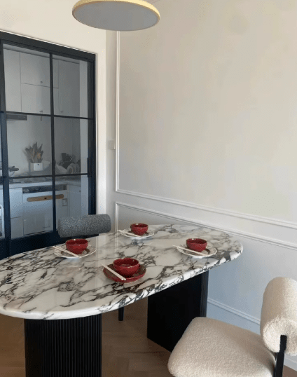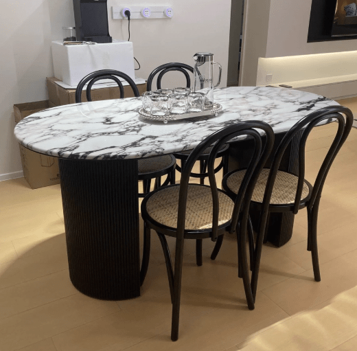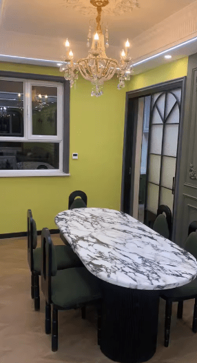 The style of the dining table is elegant and beautiful, the workmanship is very good, the material of the rock board is very high-end, the price is affordable, and I am satisfied