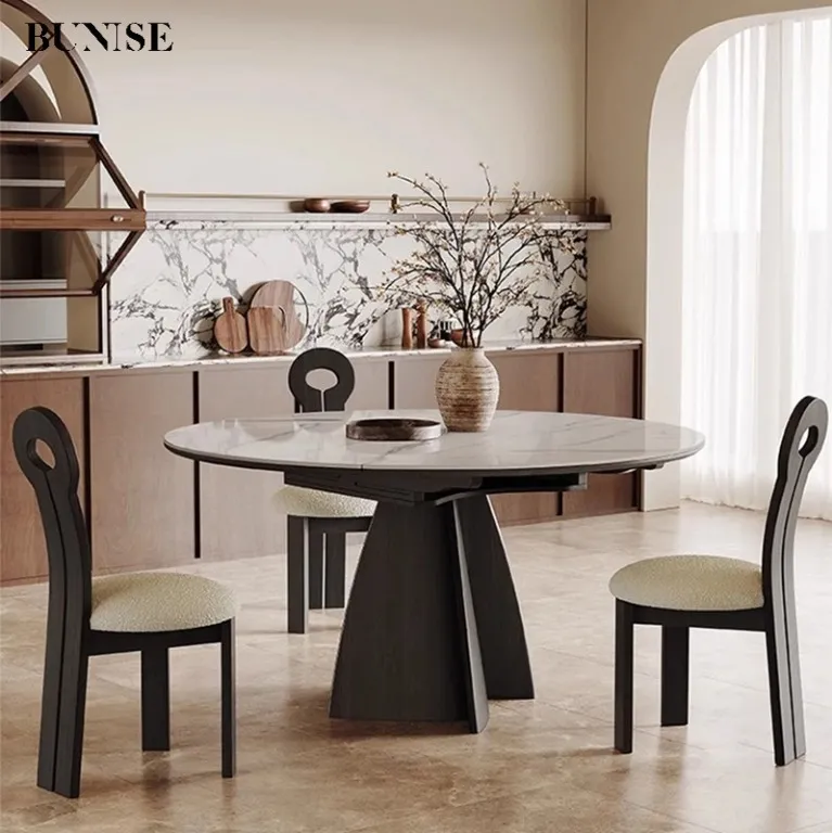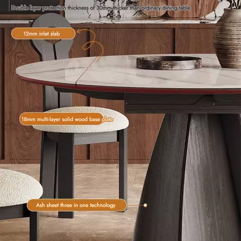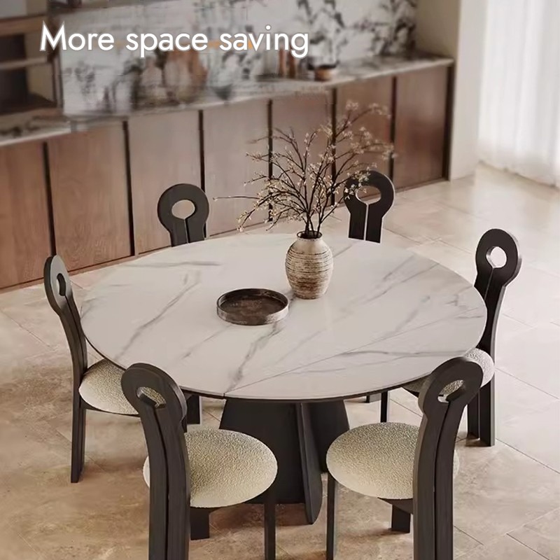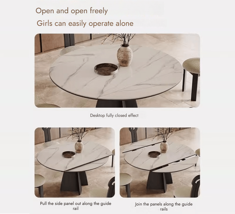 This French-style table is pure magic! The round-to-square conversion takes 10 seconds, and the extendable leaves hide seamlessly under the tabletop.