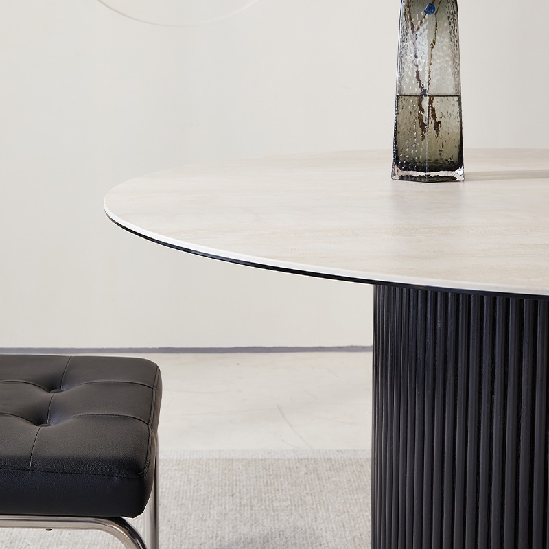Nordic solid wood round dining table,Coffee table,Minimalist cave stone slab surprise silent wind table