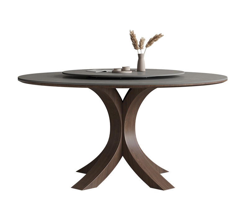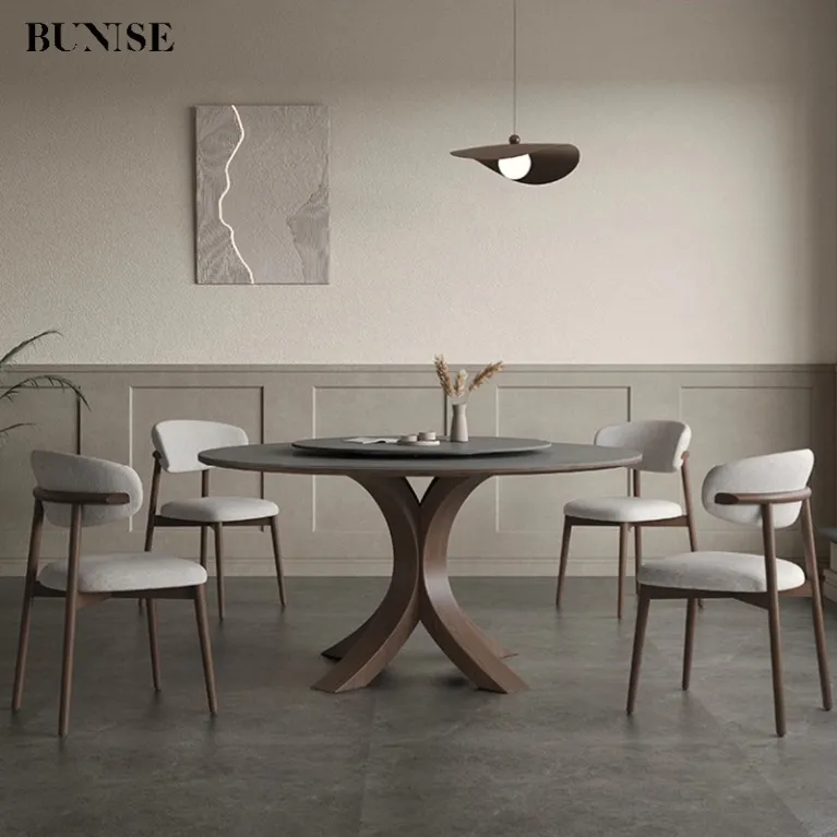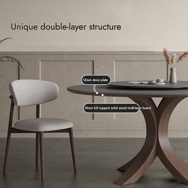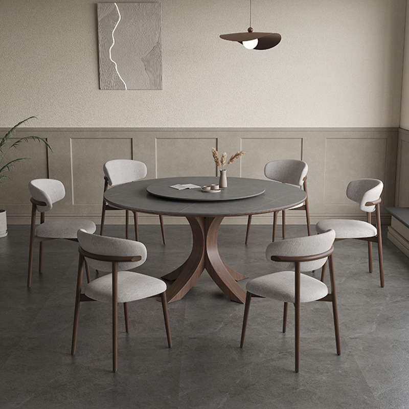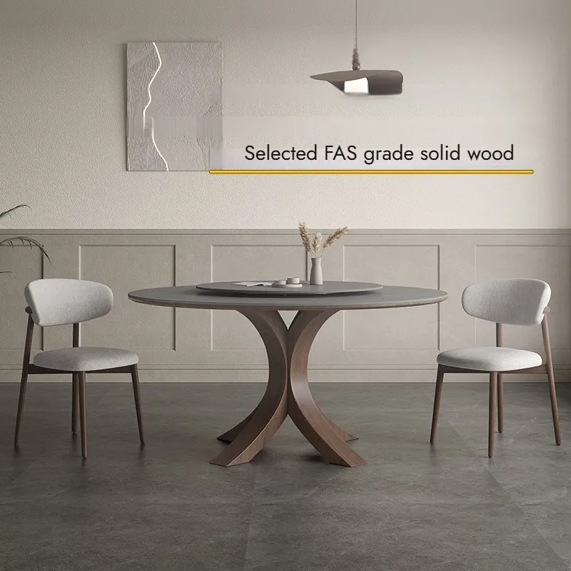 Round table with matte SLATE,Modern simple Italian dining table,High-end ash wood solid wood round table