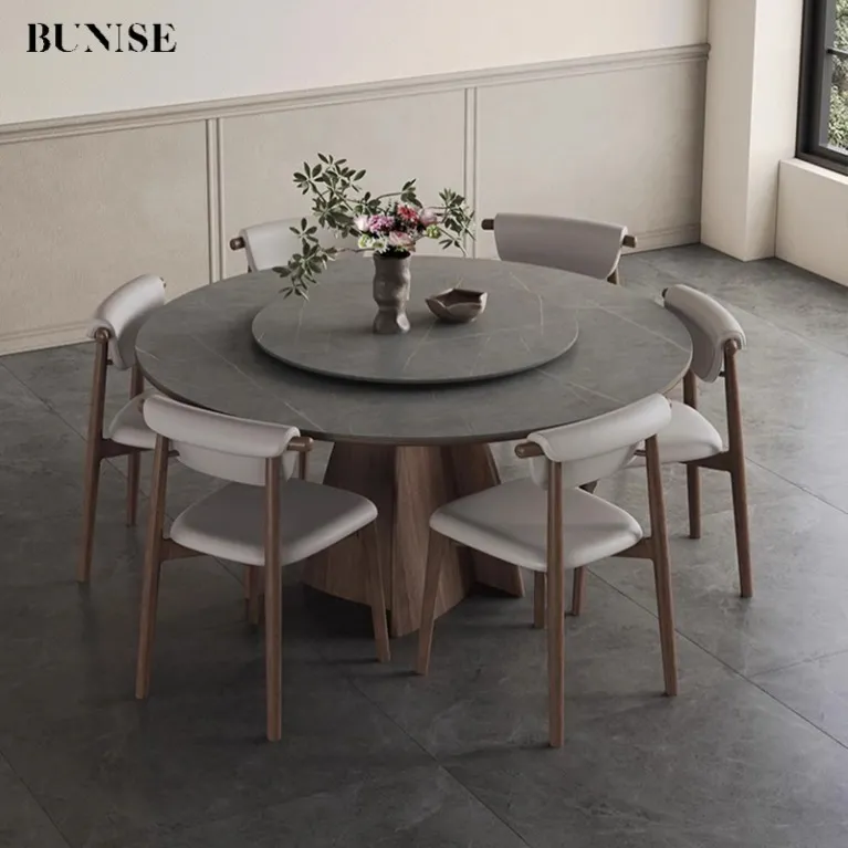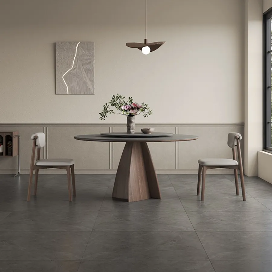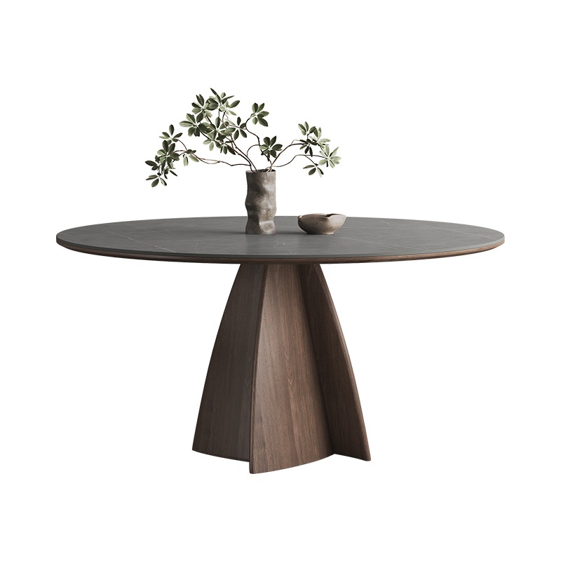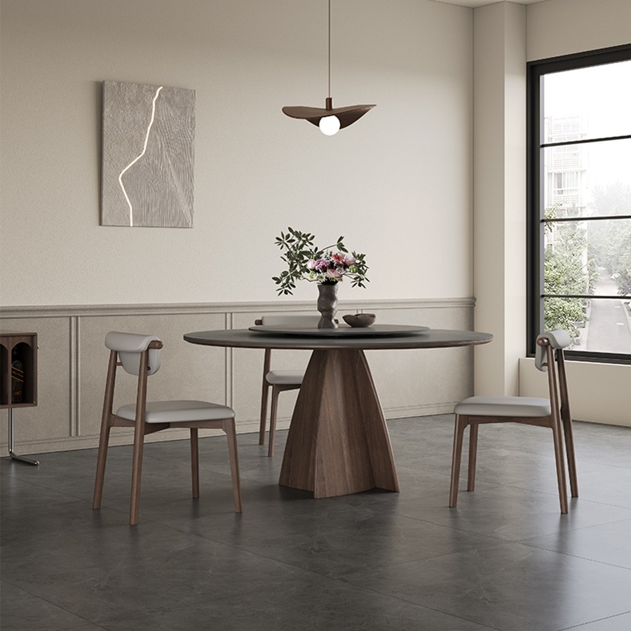 Italian high-end solid wood dining table,Round family dining table with turntable,New wabi-Sabi in walnut matte SLATE round table