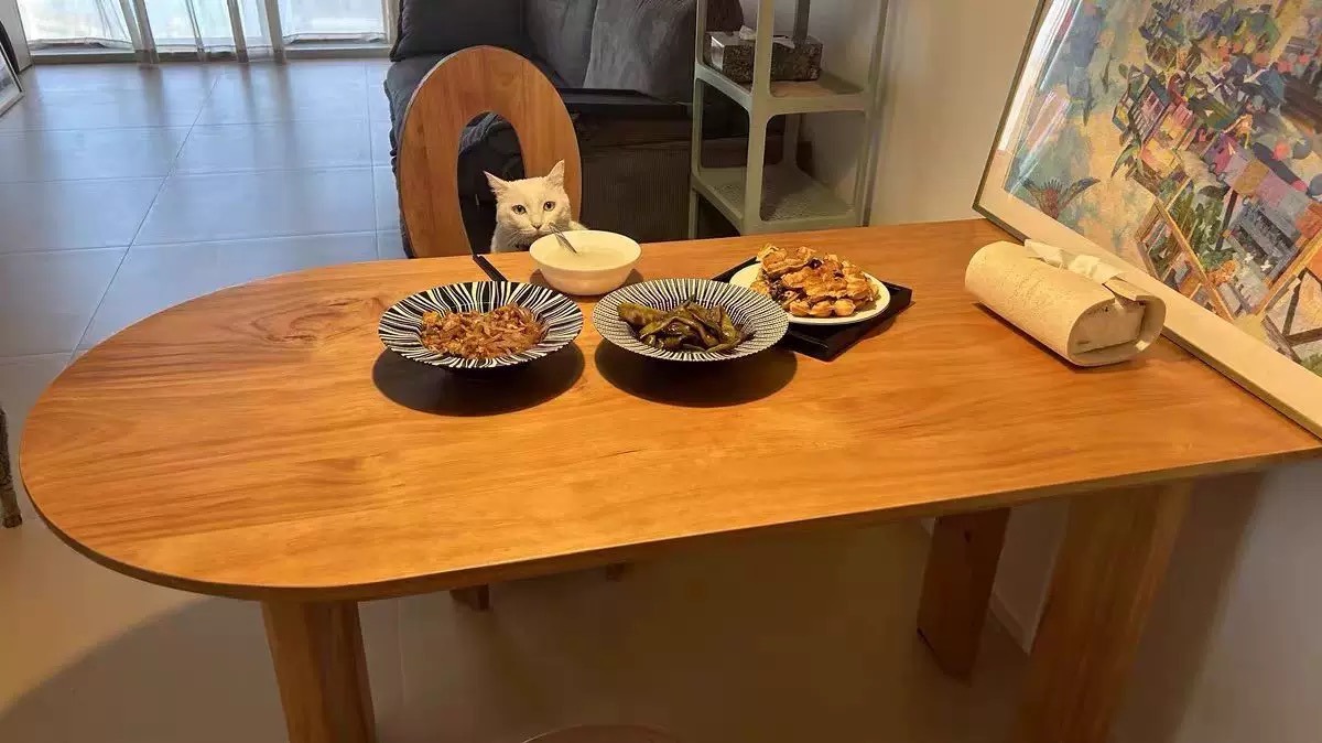 It’s the perfect size for our small dining area and the wood is just beautiful