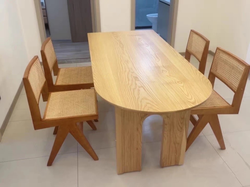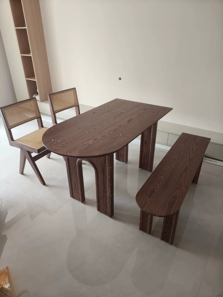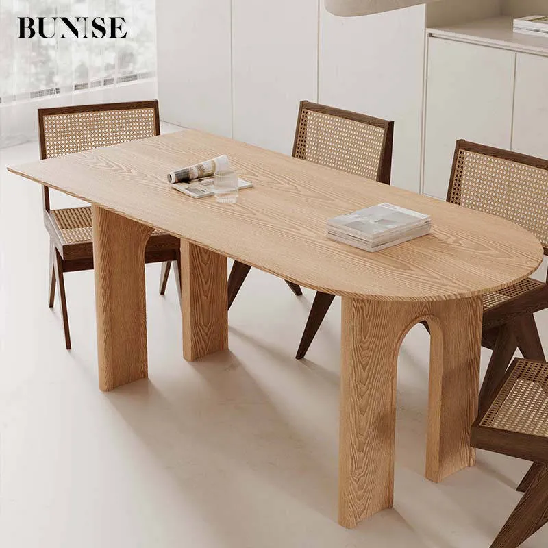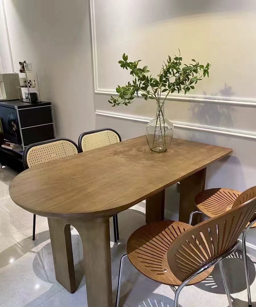solid wood dining table Scandinavian creative wabi-sabi style center island table dining table in one retro living room table and chairs log long table