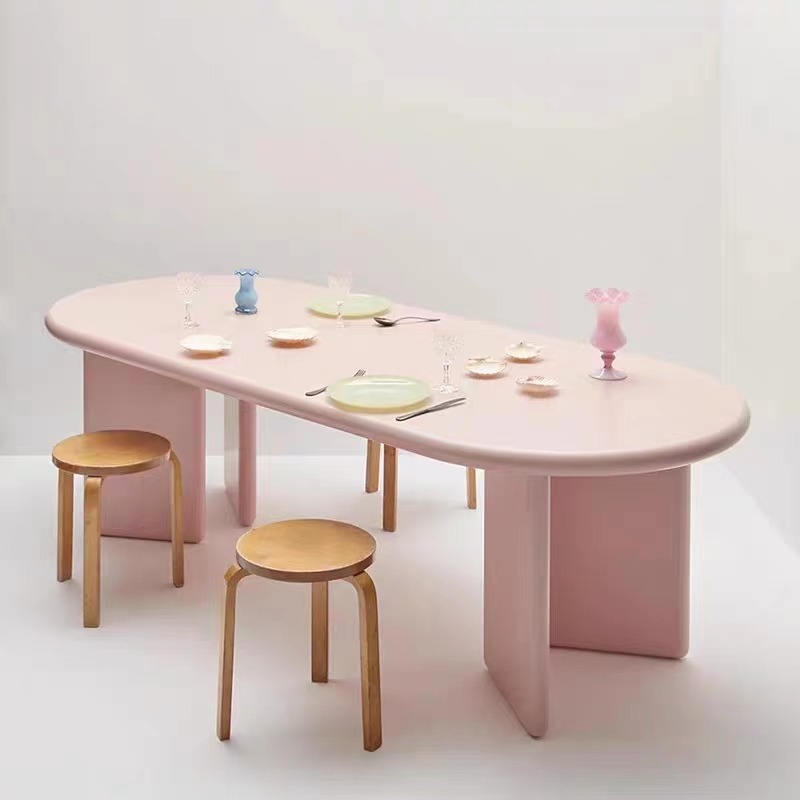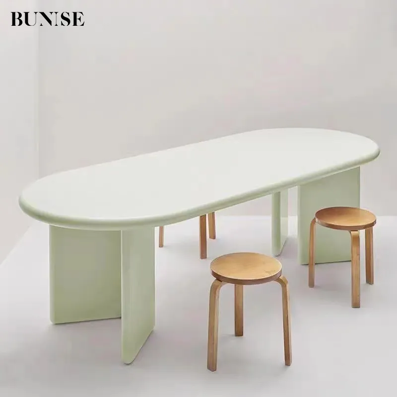 Nordic Solid Wood Dining Table Cream Modern Simple Oval Home Long Table Creative Personalized Negotiation Table Workstation