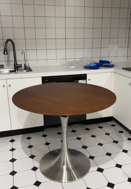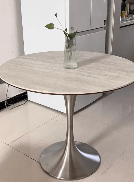 This small round sintered stone table is amazing! The sintered stone surface is smooth and easy to maintain, and the solid wood base is stable and sturdy. It fits perfectly in the living room, and all my friends ask where I bought it when they come over!