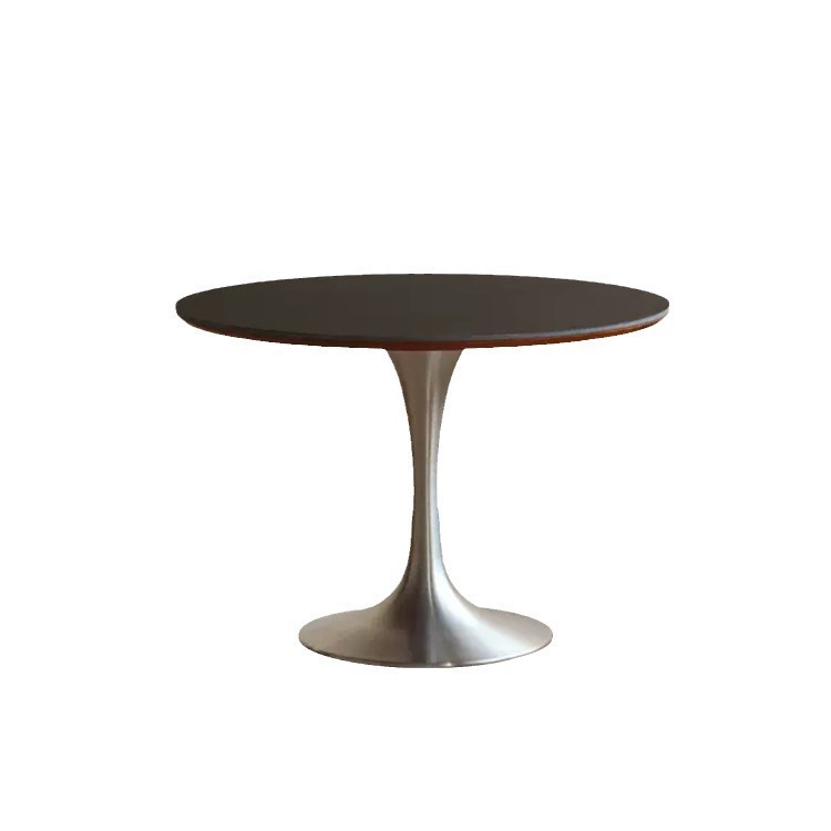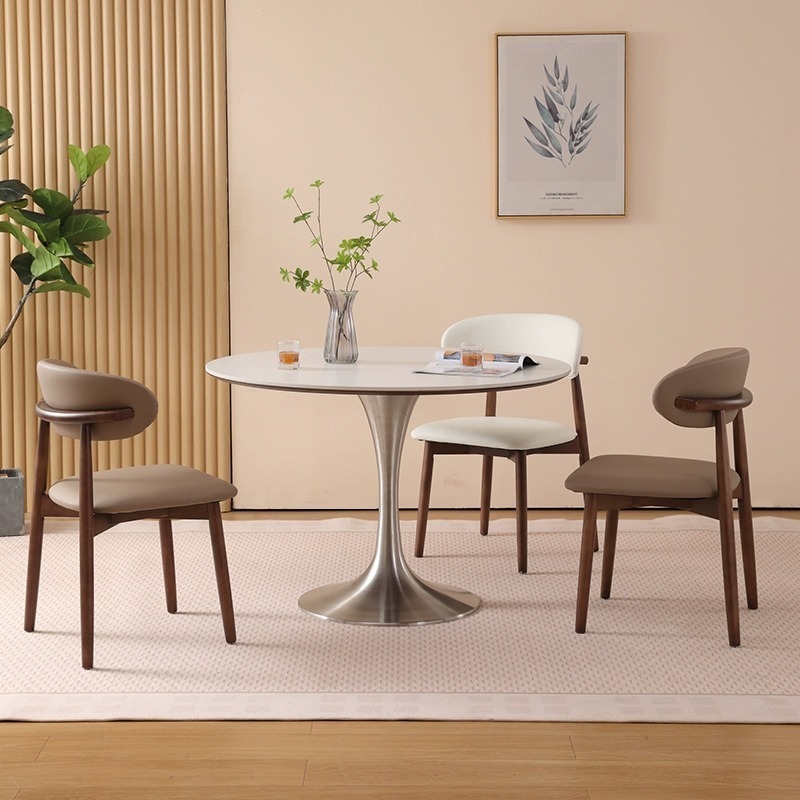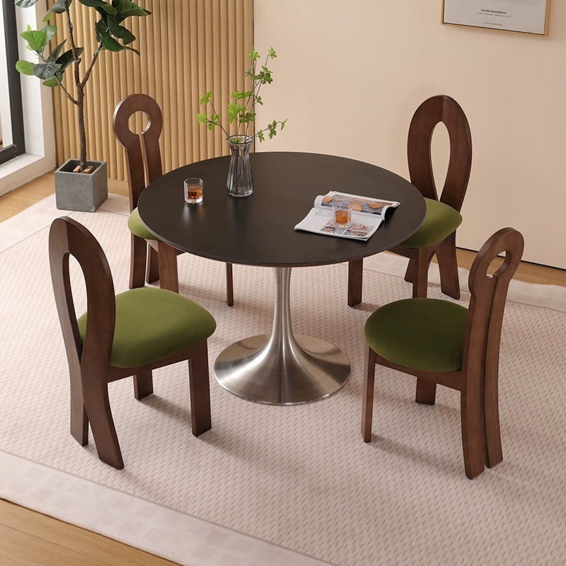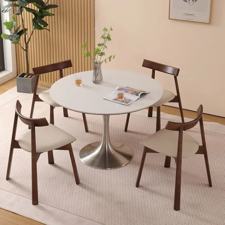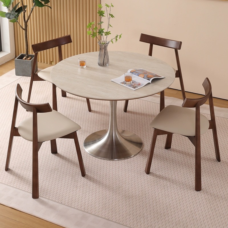 Round Dining Table for Small Spaces, Solid Wood and Rock Plate, Retro Luxury Design