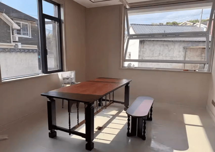 The texture of solid wood is very solid, the table top is so smooth that it can reflect the light, and it is very convenient to wipe daily.
