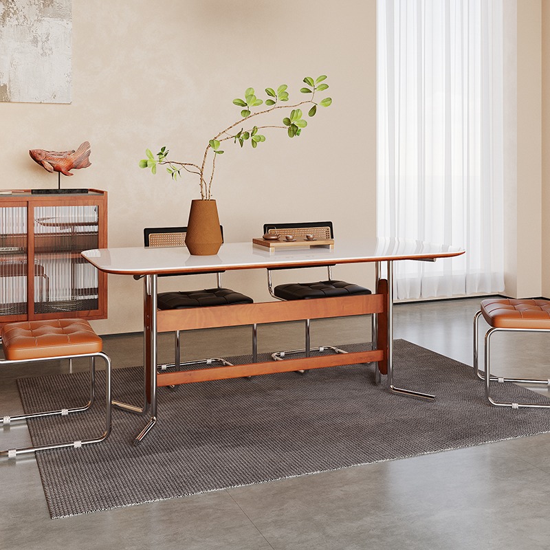Premium Mohs 7 Sintered Stone Table with Rubberwood Frame: Food-Safe, 1280°C Heat-Resistant & Storage-Integrated by BUNISE