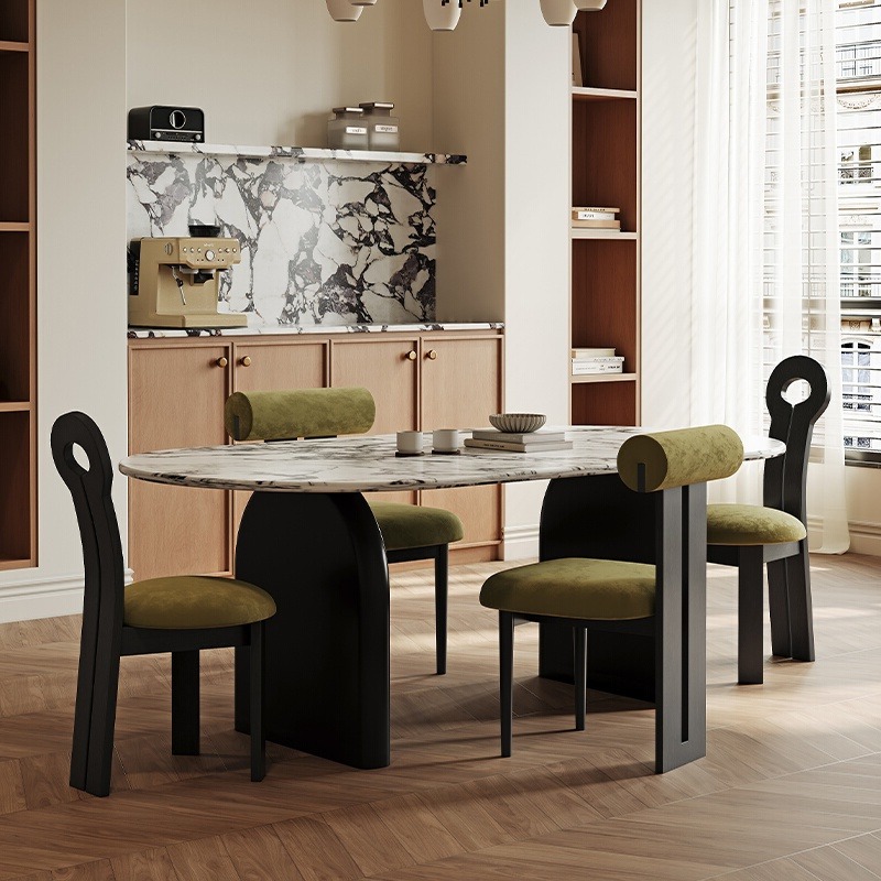 Round table with matte SLATE,Modern simple Italian dining table,High-end ash wood solid wood round table