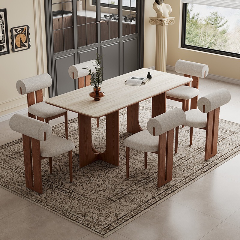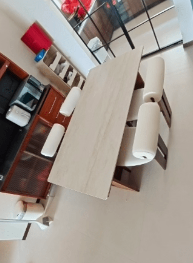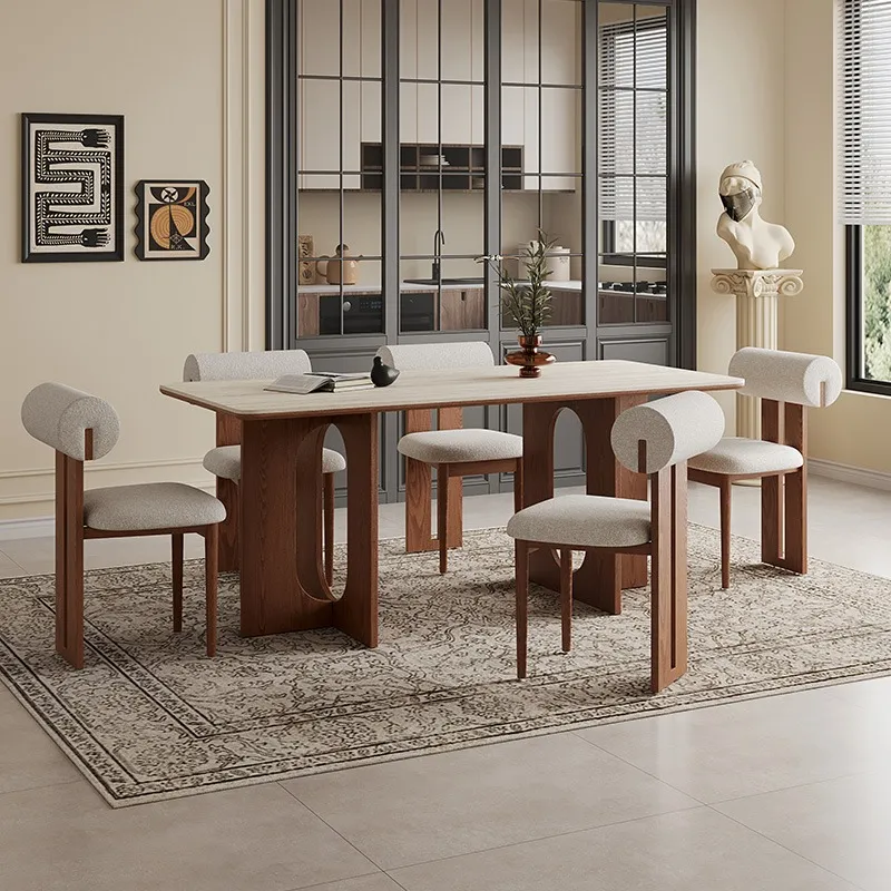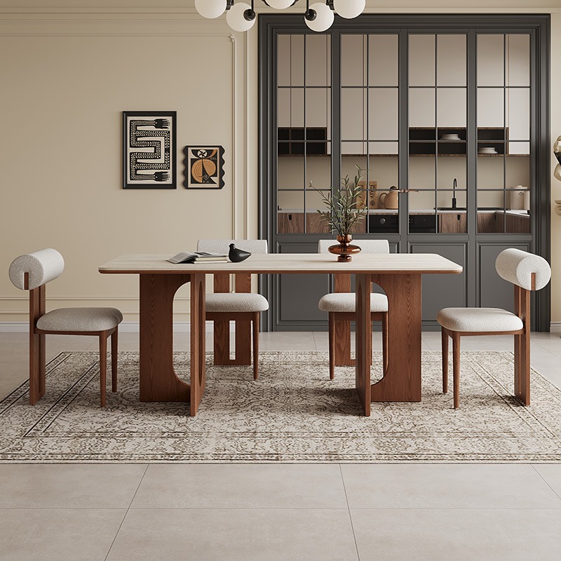 30mm Antibacterial Sintered Stone Dining Table with Reinforced Ash Wood Base: Heat-Resistant & Heavy-Duty Design.