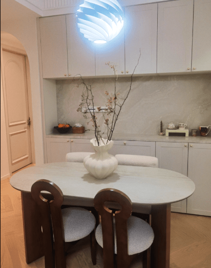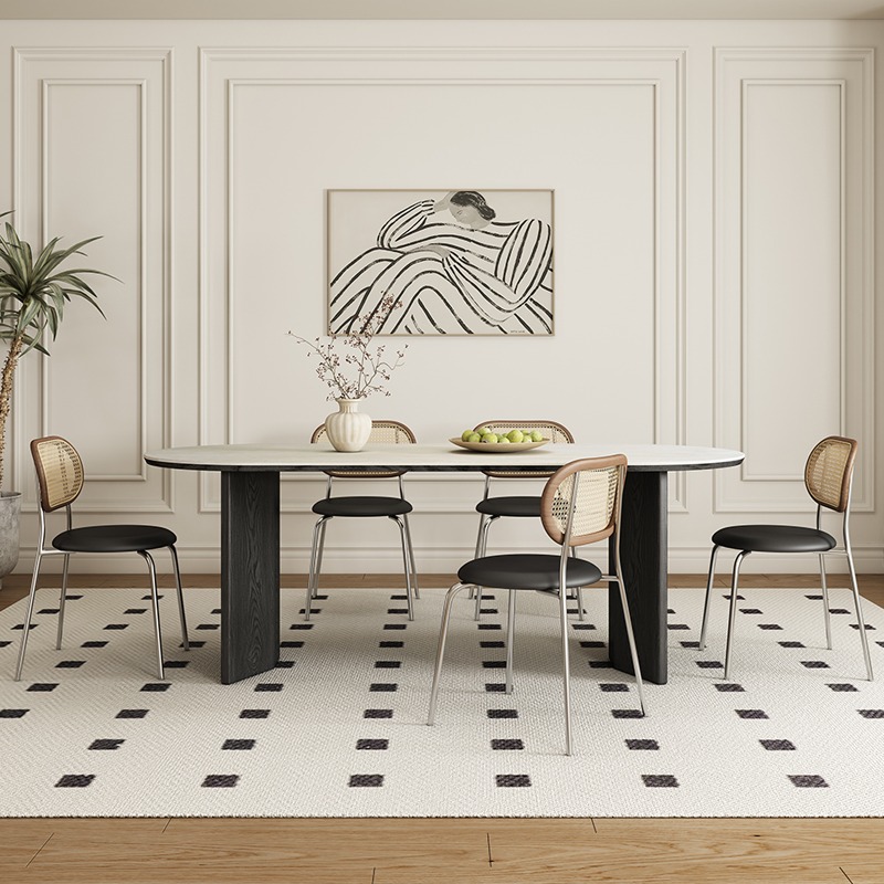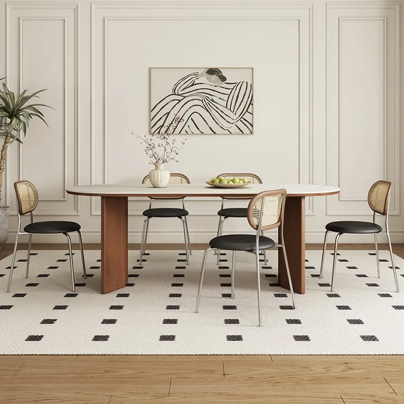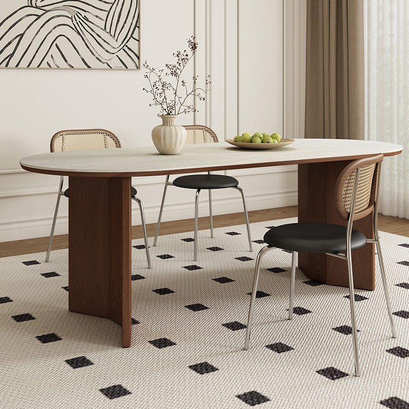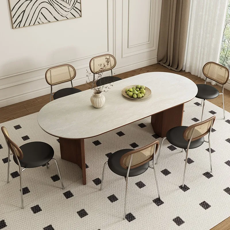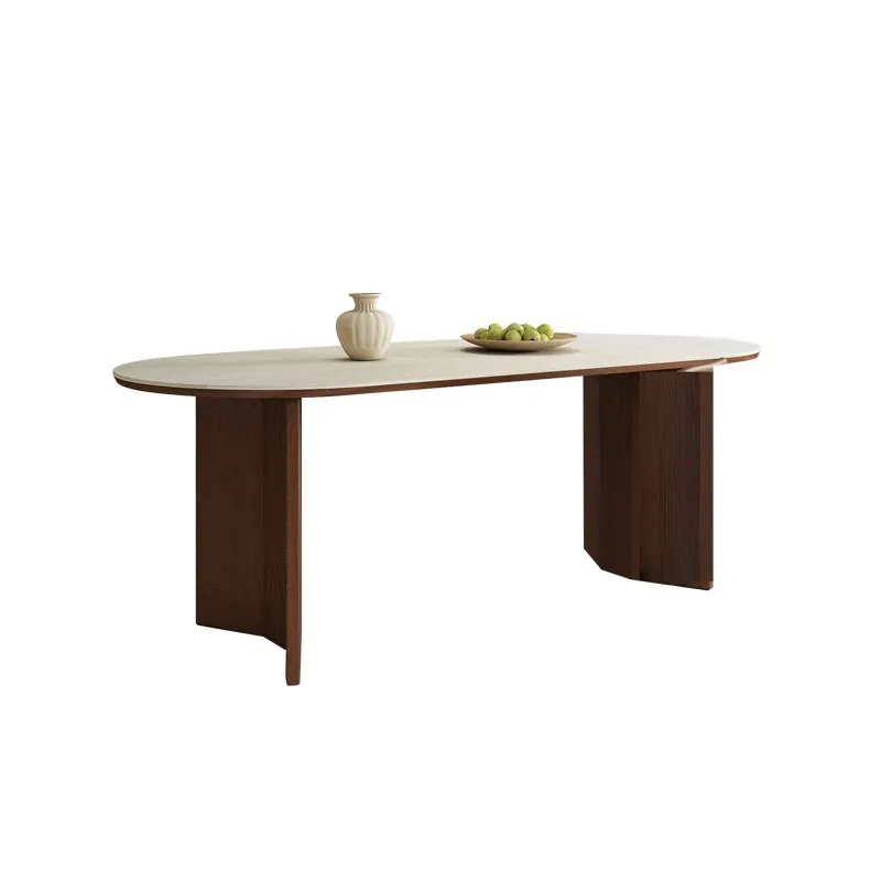 Spacious Sintered Stone Dining Table with Solid Wood Frame: Eco-Friendly, Rounded Corners, and Perfect for Parties & Work.