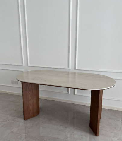 The travertine tabletop looks absolutely stunning and feels substantial. The solid wood legs are also high-quality. Overall, it’s an incredible value.