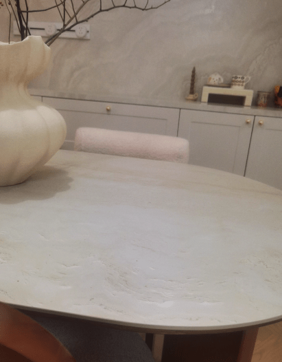 The table has a wonderful texture and pairs perfectly with my travertine sideboard. It’s both stylish and easy to maintain!
