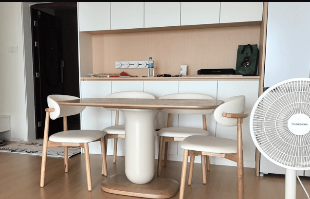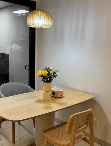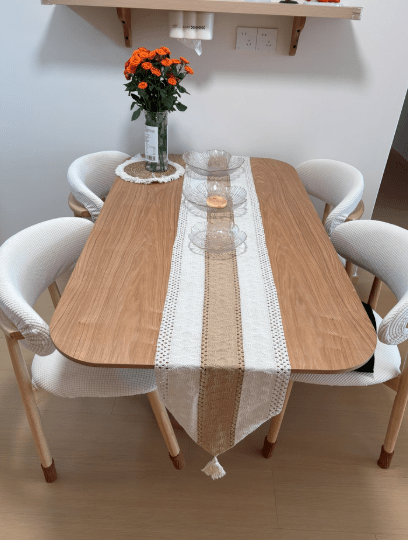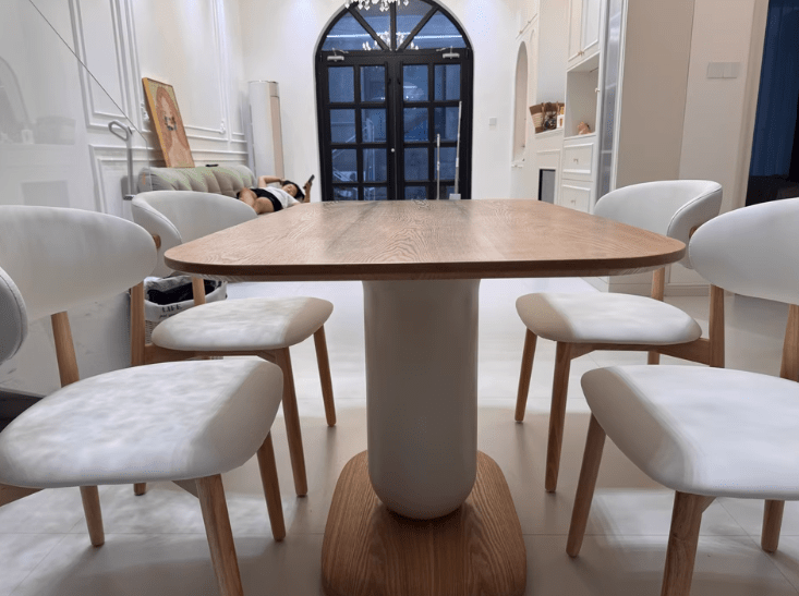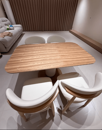 After choosing a dining table for a long time, we finally found a log cream dining table that suits our home