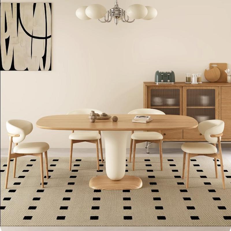 Light luxury marble table,French vintage oval table,Solid wood dopamine modern very simple dining table