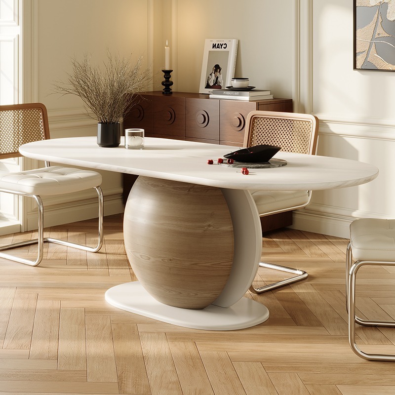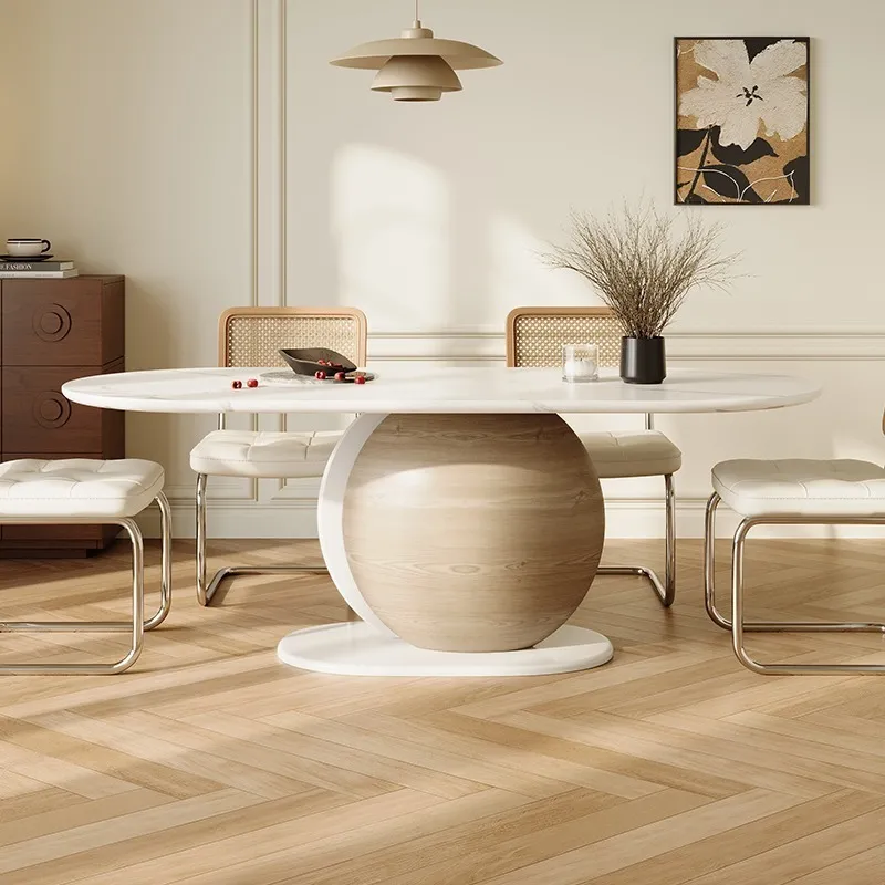 Light luxury marble table,French vintage oval table,Solid wood dopamine modern very simple dining table