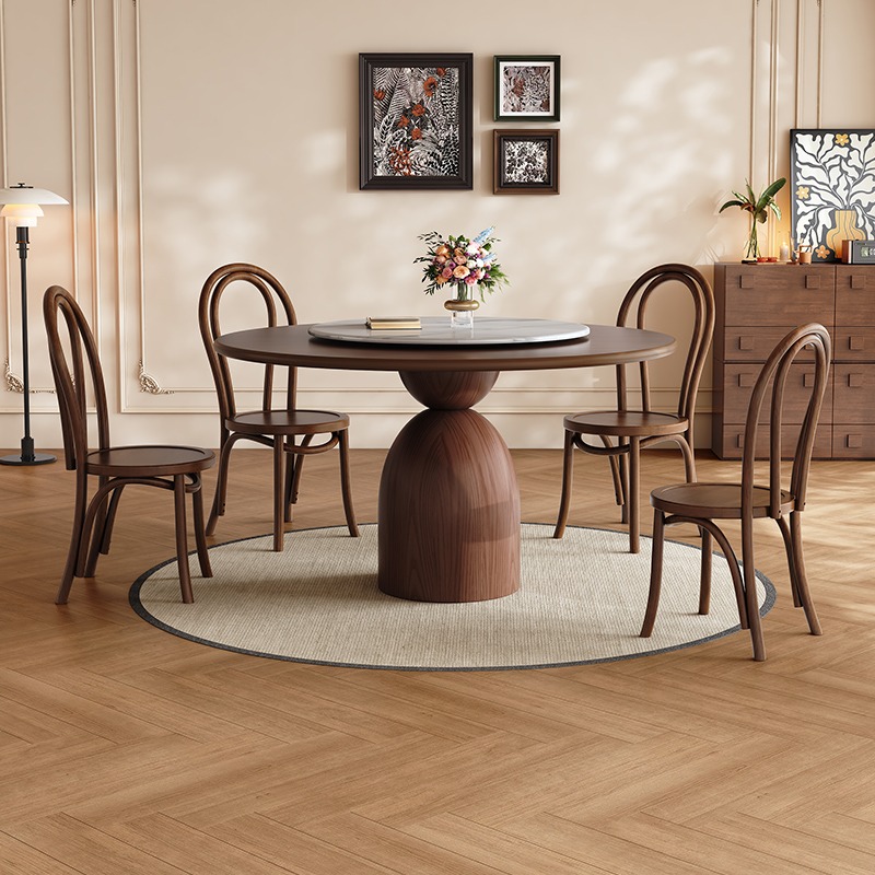 Premium FAS North American Ash Wood Dining Table with 360° Rotating Sintered Stone Turntable & Child-Safe Finish.