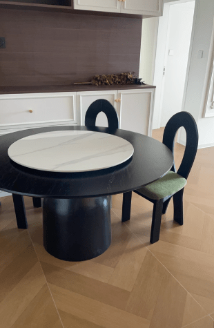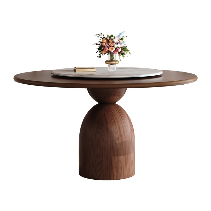 Premium 12mm Sintered Stone Round Dining Table with Eco-Friendly Solid Wood Base and Smooth Rotating Lazy Susan.