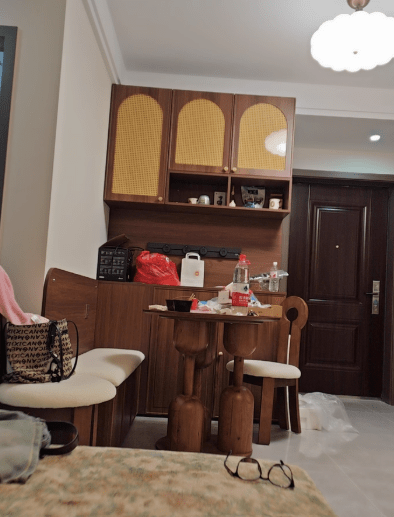 After searching for so long, this minimalist-style table is the perfect match. The top is solid with a rich black wood grain that feels incredibly premium, absolutely in love with it!
