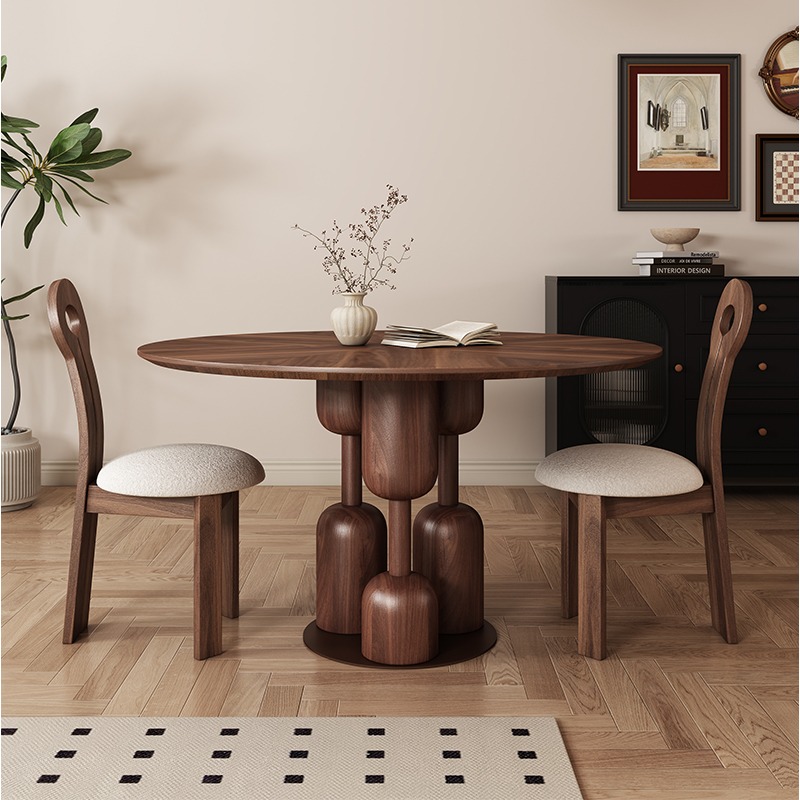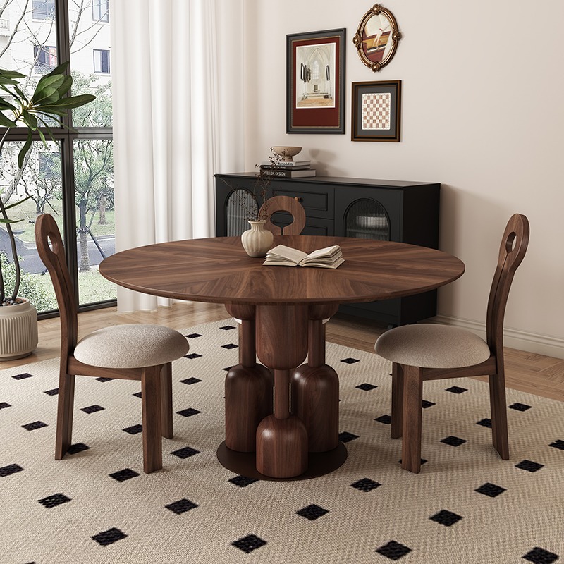 Nordic solid wood round dining table,Coffee table,Minimalist cave stone slab surprise silent wind table