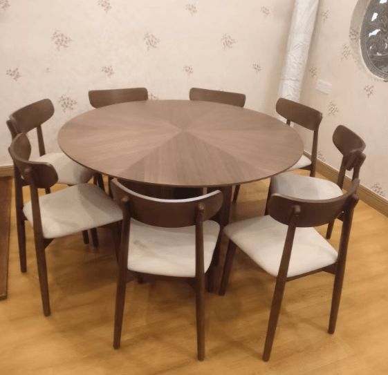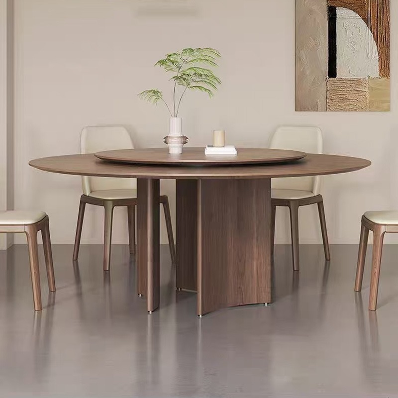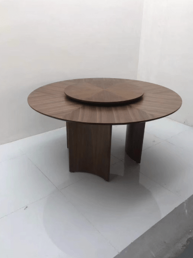 Solid Wood Round Dining Table with Detachable Black Walnut Lazy Susan & Anti-Warping Cold-Press Tech.