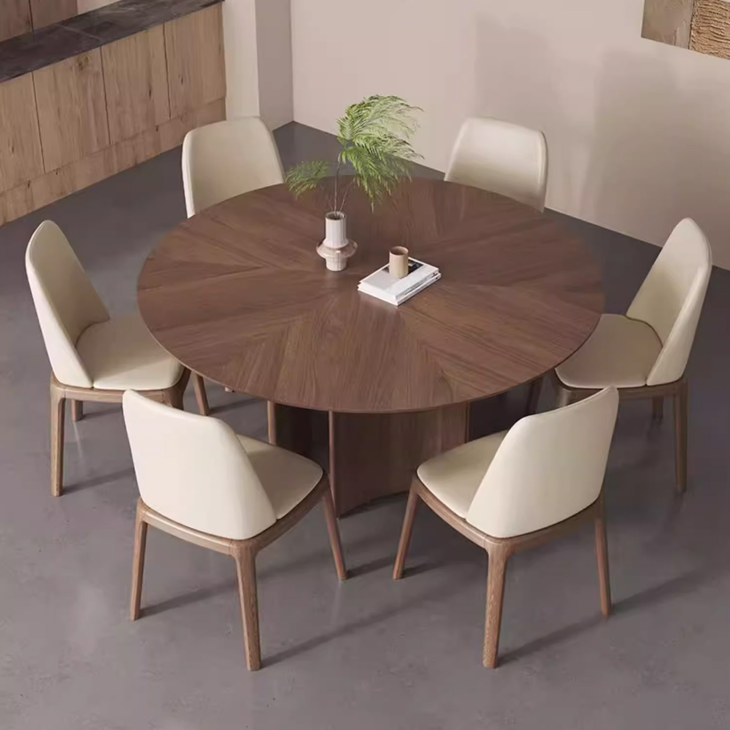 Nordic solid wood round dining table,Coffee table,Minimalist cave stone slab surprise silent wind table