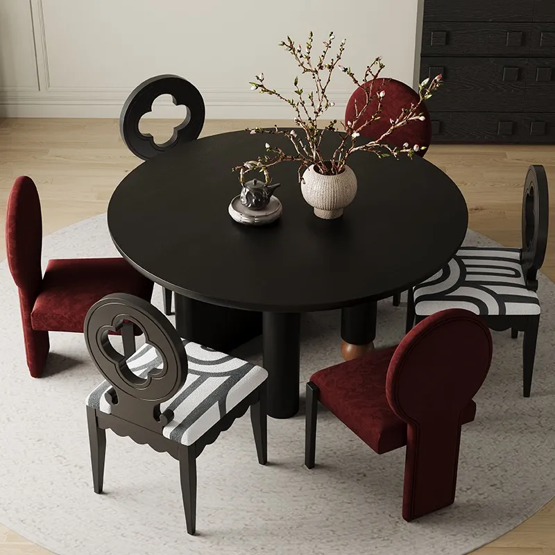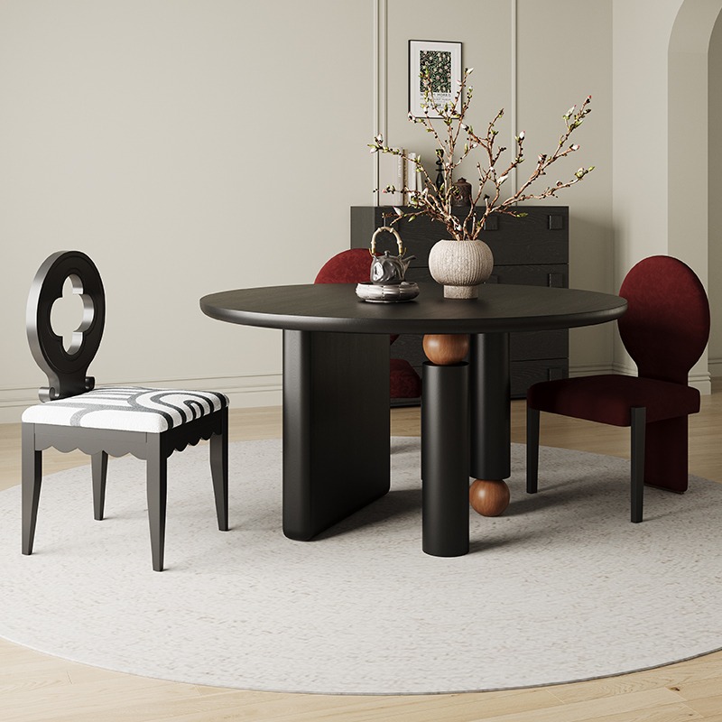 Nordic solid wood round dining table,Coffee table,Minimalist cave stone slab surprise silent wind table
