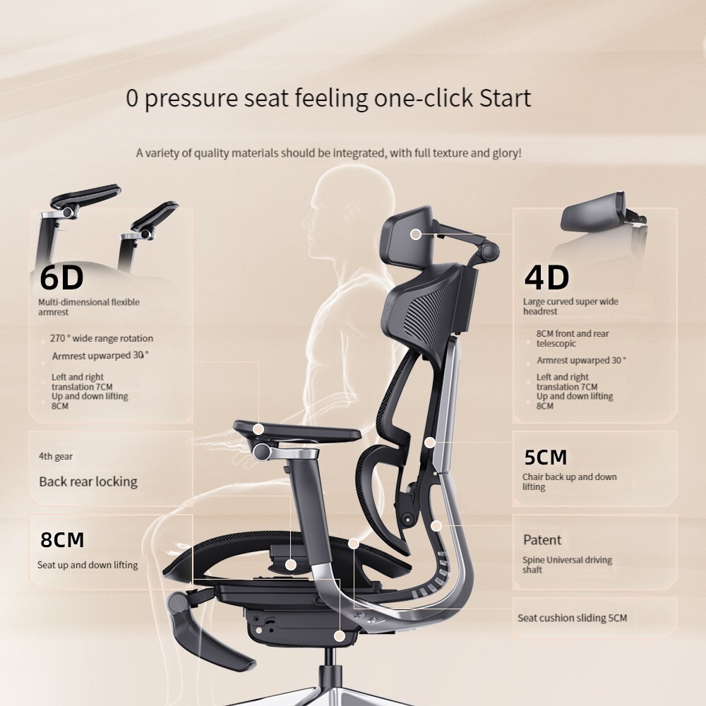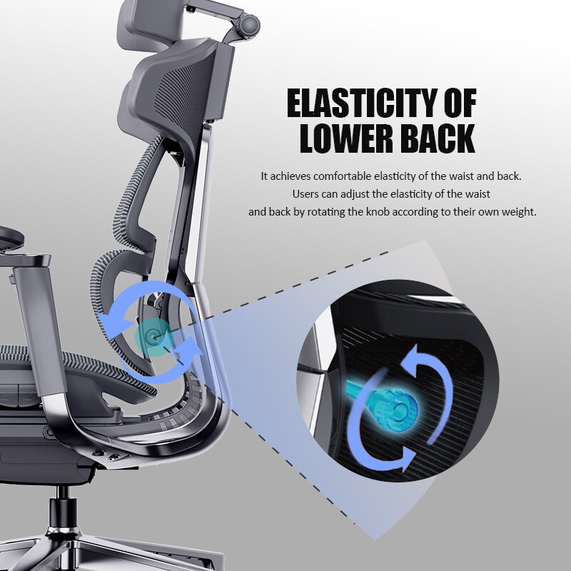 The lumbar and back areas are comfortable and flexible. Users can adjust the resilience of the lumbar and back support by turning a button according to their own weight