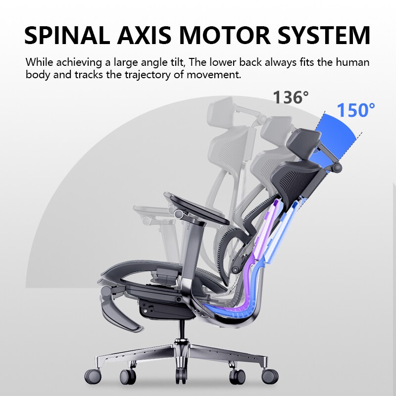 While having a wide angle of inclination, the lumbar and back will always fit the human body, following the movement trajectory, and the maximum inclination reaches up to 150°