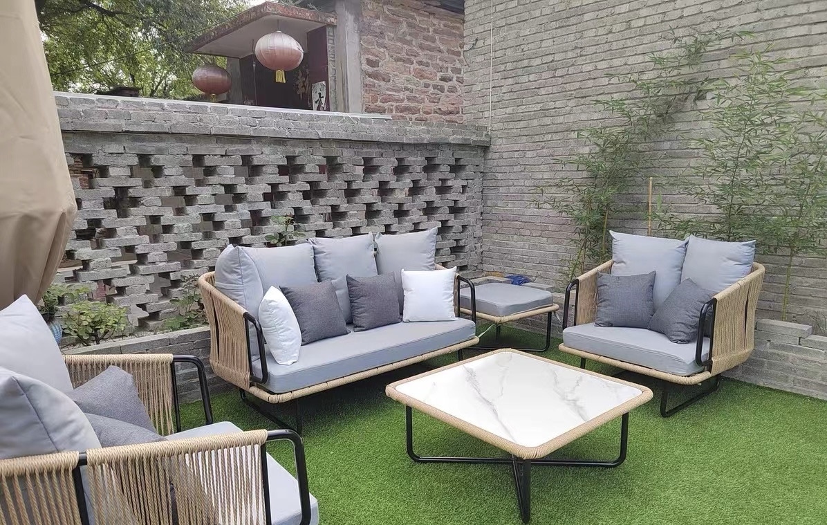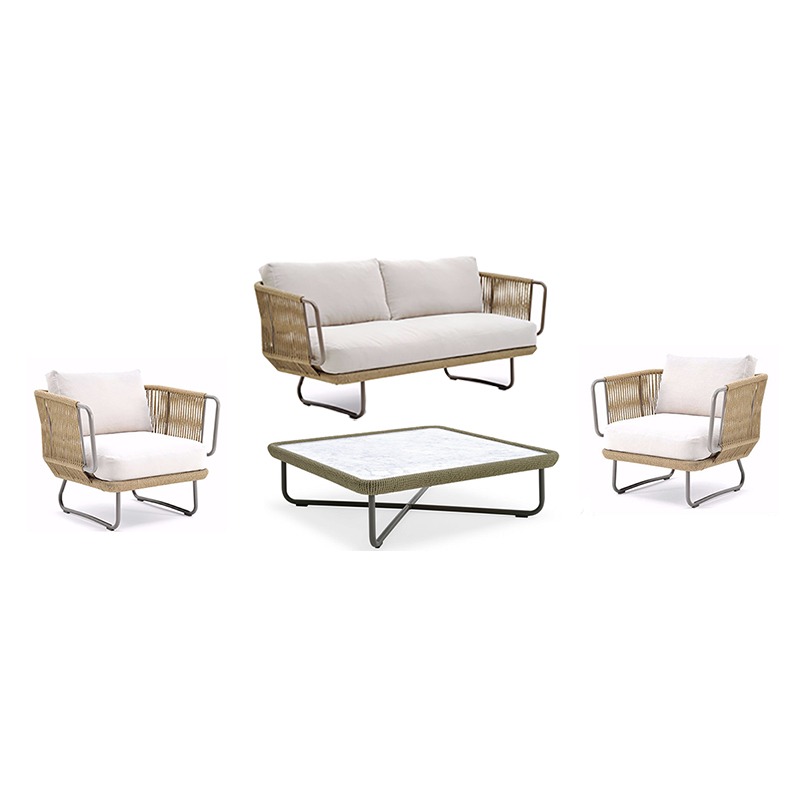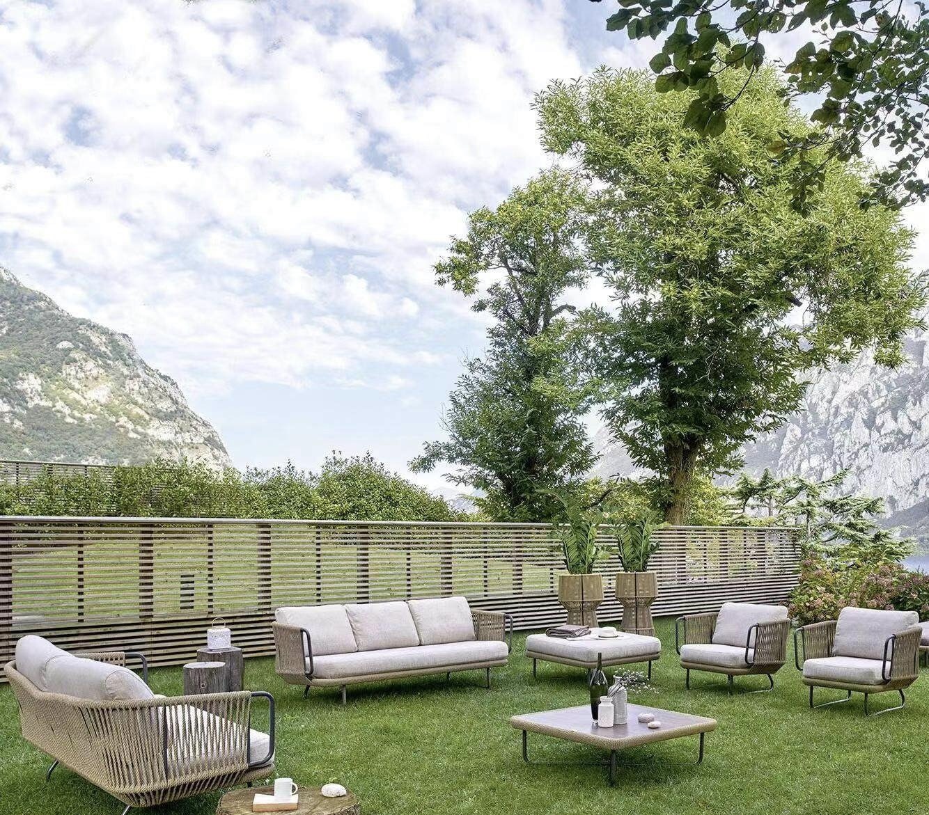 BUNISE Nordic Outdoor Sofa Set P36 – Rope and Woven Rattan Furniture for Gardens, Balconies, and Villas