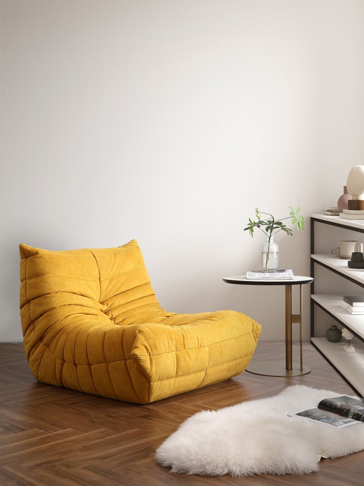 Nordic Style Single Lounge Chair for Living Room, Minimalist Modern Design, Caterpillar Bean Bag Sofa