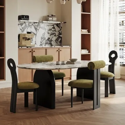 Arc de Triomphe Sintered Stone Dining Table: Mohs 7 Hardness, 300KG Capacity & Eco-Friendly FAS Rubberwood.