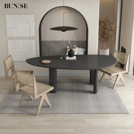 Nordic Solid Wood Dining Table Cream Modern Simple Oval Home Long Table Creative Personalized Negotiation Table Workstation