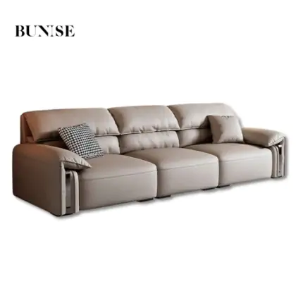 Bunise Genuine Leather Sofa, Fine Cowhide, Italian Minimalist Style. Modern Luxury, Vintage Scent, Suitable for Living Rooms and Small Condos