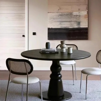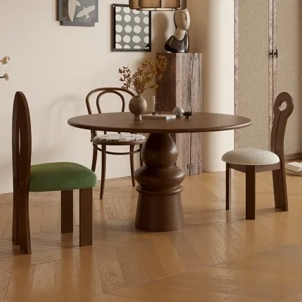 French retro oval round table,Ancient solid wood dining table,Round casual coffee table desk Meeting table