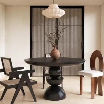 Premium 30mm Solid Wood Table: Plant-Based Oil Finish, Safe Rounded Edges & Unique Artisan Legs by BUNISE.