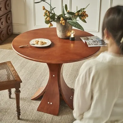 Premium 110cm Round Ash Wood Table: 25mm Thickened Top, Eco-Friendly & Artistic Design by BUNISE.