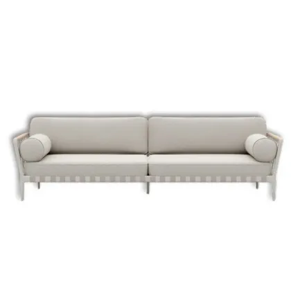 Designed for the tropical climate of Thailand, this curved outdoor sofa combines artistic form with industrial-grade durability. The Teslin webbing offers superior breathability and UV resistance, while the waterproof fabric cushions ensure quick drying after rain. Perfect for infinity pools, garden patios, or beachfront terraces.