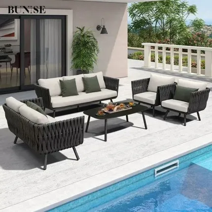 Waterproof UV-Resistant Rope and Rattan Furniture with Coffee Table for Gardens, Balconies, and Villas